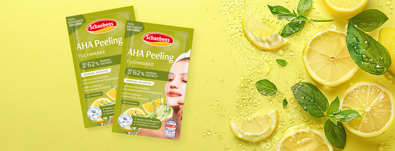 AHA Peeling Tuchmaske von Schaebens - verfeinert das Hautbild und löst abgestorbene Hautschüppchen
