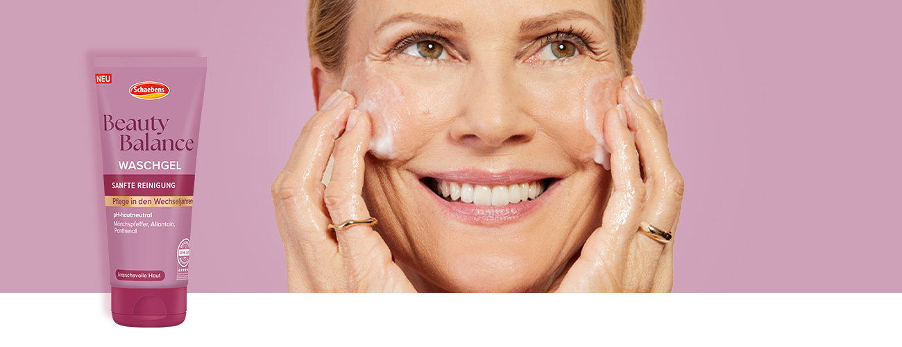 Das Beauty Balance Waschgel wurde speziell für die Haut in den Wechseljahren entwickelt und reinigt sie sanft und gründlich. Die pH-hautneutrale Formel mit Mönchspfeffer, Allantoin, Panthenol befreit die Haut zuverlässig von Schmutzpartikeln und Make-Up und sorgt für ein erfrischtes Hautgefühl.