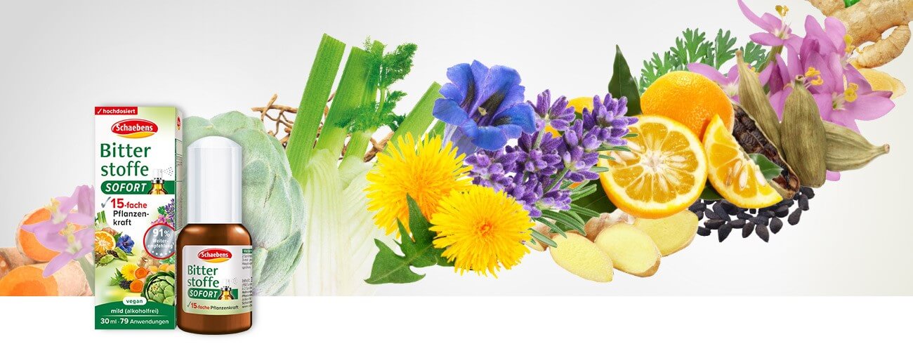 Schaebens Bitterstoffe SOFORT-Spray ist der perfekte tägliche Begleiter – die Rezeptur besteht aus erlesenen Pflanzenextrakten mit wertvollen Bitterstoffen.