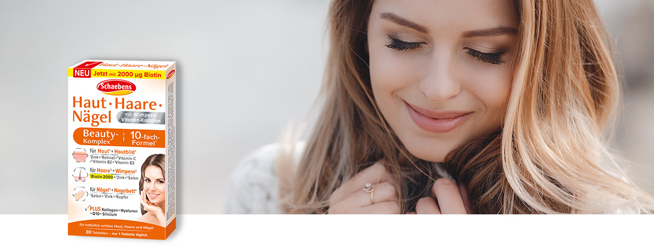 Für die Haare, mitunter auch die Wimpern, liefert der Beauty-Komplex das Haar-Vitamin Biotin sowie Selen und Zink, die zur Erhaltung normaler Haare beitragen.