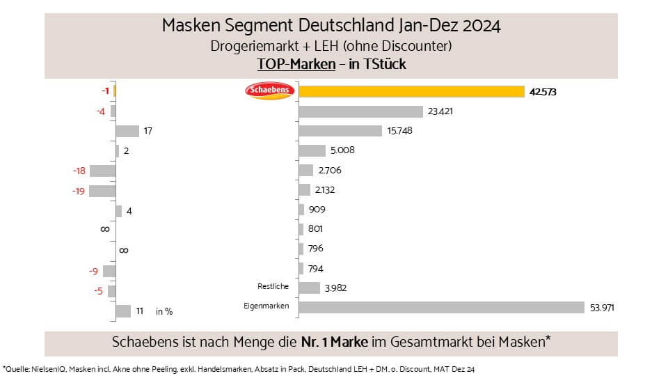 *2) gem. Marktforschungsinstitut NielsenIQ: Masken incl. Akne ohne Peeling, exkl. Handelsmarken, Absatz in Pack, Deutschland LEH + DM. o. Discount, seit 2015